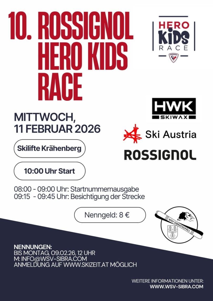 Startnummernausgabe von 08:00 bis 09:00 Uhr | Besichtigung der Strecke von 09:15 bis 09:45 Uhr Nenngeld € 8,00 | Nennungen bis Montag 09.02.2026 per Mail info@wsv-sibra.com | Anmeldung ebenfalls auf www.skizeit.at möglich | Weitere Infos unter www.wsv-sibra.com Skilift Krähenberg