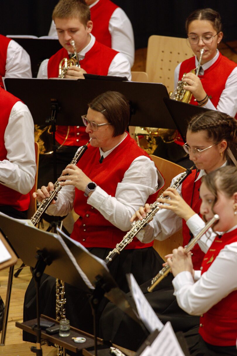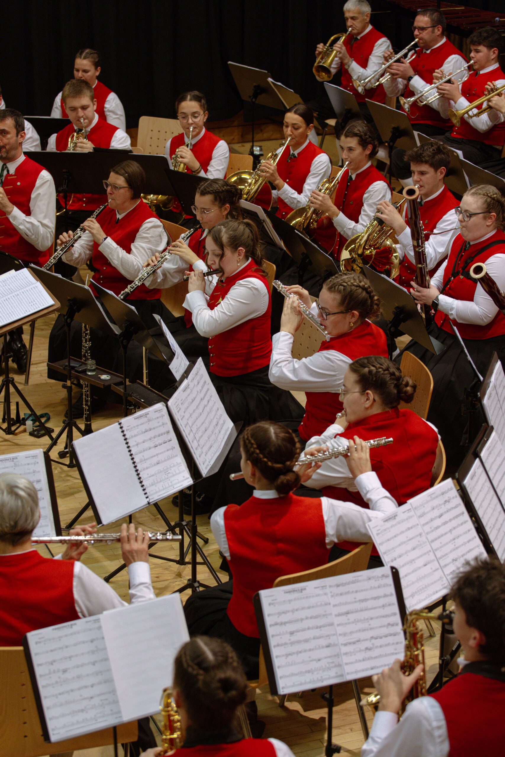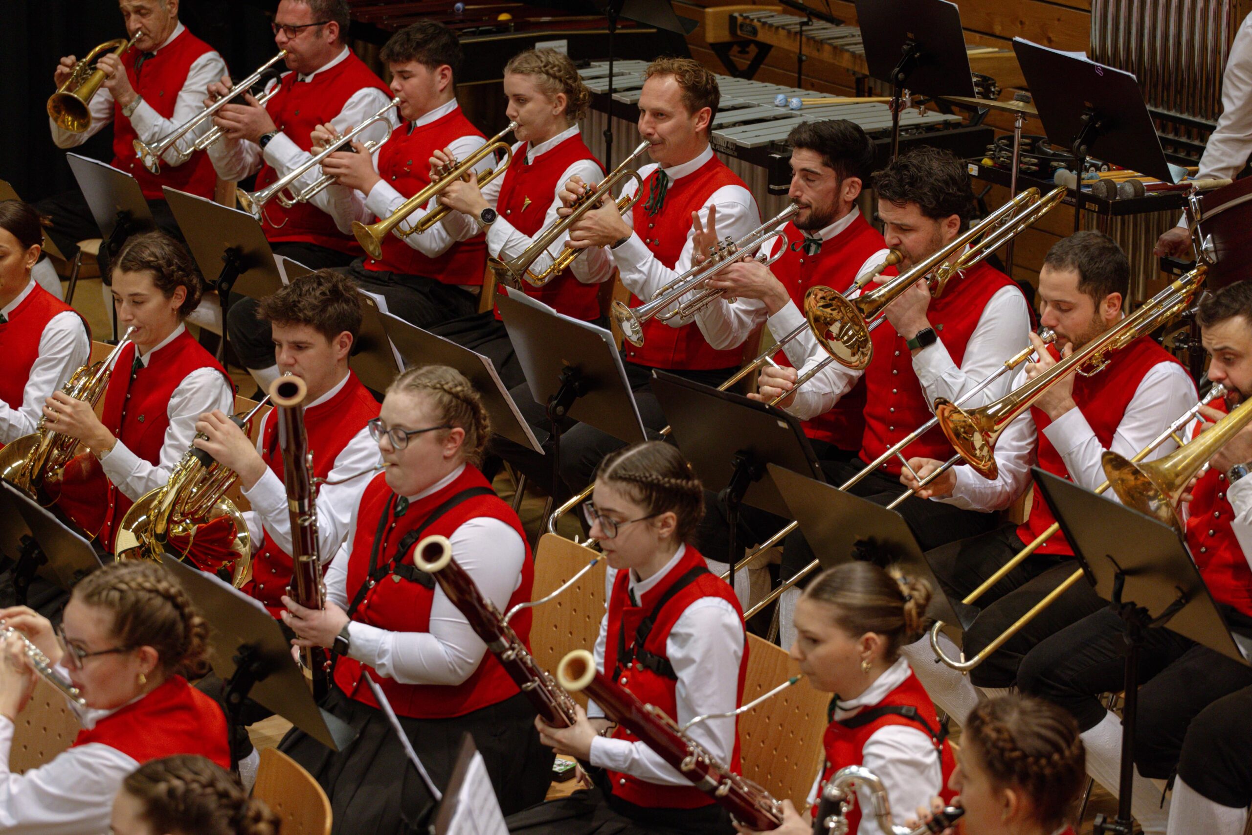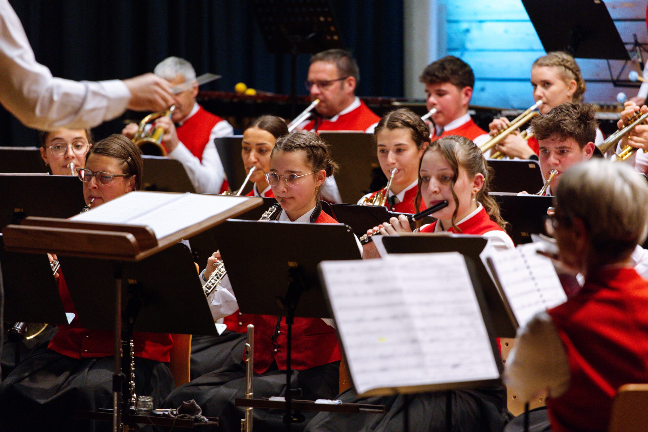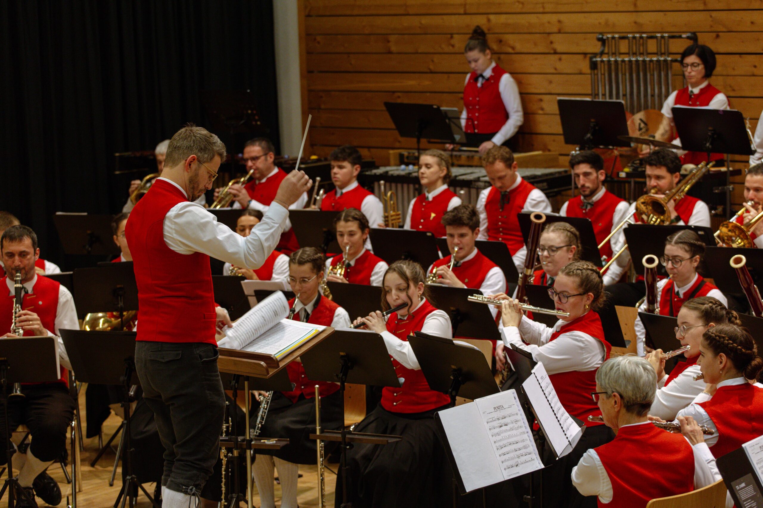 Unter der Leitung unseres Kapellmeisters Magnus Lässer nahmen wir das Publikum mit auf eine musikalische Reise von damals bis heute. Das abwechslungsreiche Programm spannte den Bogen von traditionellen Werken bis hin zu modernen Klangbildern und spiegelte die Entwicklung unseres Vereins über sieben Jahrzehnte wider.