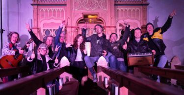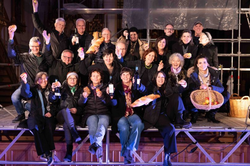 Andreas Jähnert und sein Team inszenierten – in den Grundelementen eines Gottesdienstes – ein beeindruckendes Stück immer in Verbindung zu uns und unserer Gemeinde mit ihrer Geschichte und ihren Geschichten. Immer wieder wurden an den – von KI aus x-Fotos erstellen – „Durchschnittsegger“ Fragen gestellt. Die KI-Stimme gab Antworten und warf gleichzeitig Fragen auf. Gute Nachrichten wurden gesucht. Wir hörten die Predigt von der Kanzel. Der Frage, wer denn „Vater Unser“ sei, wurde nachgegangen und mit dem erlebbaren Wir wurden wir zum Teilen von Essen und Trinken animiert. Ein starkes Plädoyer für „Give peace a chance“ bildete den theatralischen Abschluss bevor wir uns noch einmal auf unsere Heimat und Herkunft besannen und in einem großen Gemeinschaftschor – aus Akteur:innen und Besucher:innen „ein Wälderdorf“ erklang.