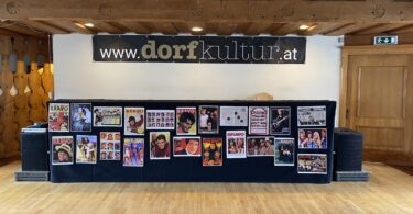 Pünktlich um 20:00 Uhr begann das abendfüllende Programm mit dem Titel „Musik ist Trumpf“ von Hazy Osterwald. Riezler informierte die Gäste, dass der Verein dorfkultur seit seiner Gründung im Jahr 2003 mit einem abwechslungsreichen monatlichen Kulturprogramm rund 6000 Menschen aus ihren Häusern in die Gasthäuser von Egg und Umgebung gelockt hat. Dem Verein liegt am Herzen, dass die Wirte gut ausgelastet sind.
