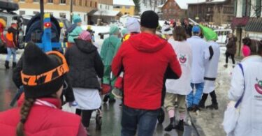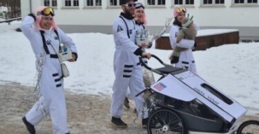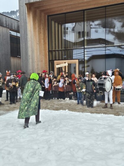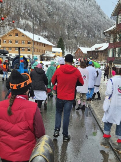 Weiter gings dann am Faschingsdienstag, wo der alljährliche kleine aber feine Faschingsumzug stattfand. Angeführt von den tollen Waldmenschen des Kindergartens und dem farbenfrohen Musikverein – verkleidet unter dem Motto „Mellental“ – machten sich zahlreiche Gruppierungen der einzelnen Parzellen zum Umzug durch das Dorf. So gab es unter anderem Astronauten, Hexen, eine Olympiabewerbung und auch ein ganzes Krankenhaus zu bestaunen. Der Bürgermeister hatte auch seine sichtliche Freude. „Es ist immer wieder schön, dass viele Gruppen aus dem Dorf zusammenkommen und gemeinsam den Fasching ausklingen lassen.“ Ein erster Ausklang fand dann gemeinsam auf dem Dorfplatz statt – mit bester Bewirtung durch den Chor Mellodiös. Schließlich war dann Kehraus in einigen Gasthäusern in Mellau bei bester Stimmung.