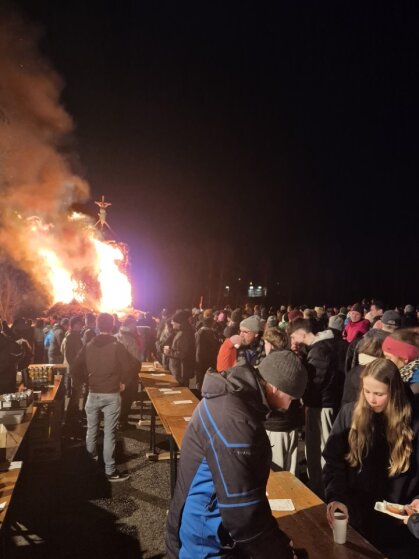 Auch der traditionelle Funkensonntag wurde dann auch in Mellau gefeiert. Durch großen Einsatz der Feuerwehr mit Funkenmeister Andreas Dietrich wurde wieder ein toller Funken aufgebaut. Die Funkenhexe bzw. -hexer wurde durch die Feuerwehrjugend gebastelt und schließlich wurde am Abend bei bestem Wetter der Winter ausgetrieben. Bei Schupfnudeln, Funkenküchle und heißen Getränken sorgte der Musikverein Mellau für die musikalische Umrahmung. Kommandant Anton Nardin bedankte sich bei allen Helferinnen und Helfern – vor allem auch bei den zahlreichen Firmen, den Bergbahnen und der Großen Viehweide – die mitgeholfen haben, das Funkenfest überhaupt möglich zu machen. Zahlreiche Besucherinnen und Besucher waren wieder mit dabei. Es war auch das ein schöner Abend auf dem Funkenplatz bei den Bergbahnen.