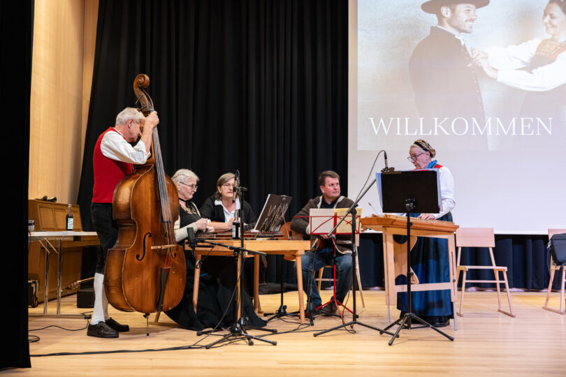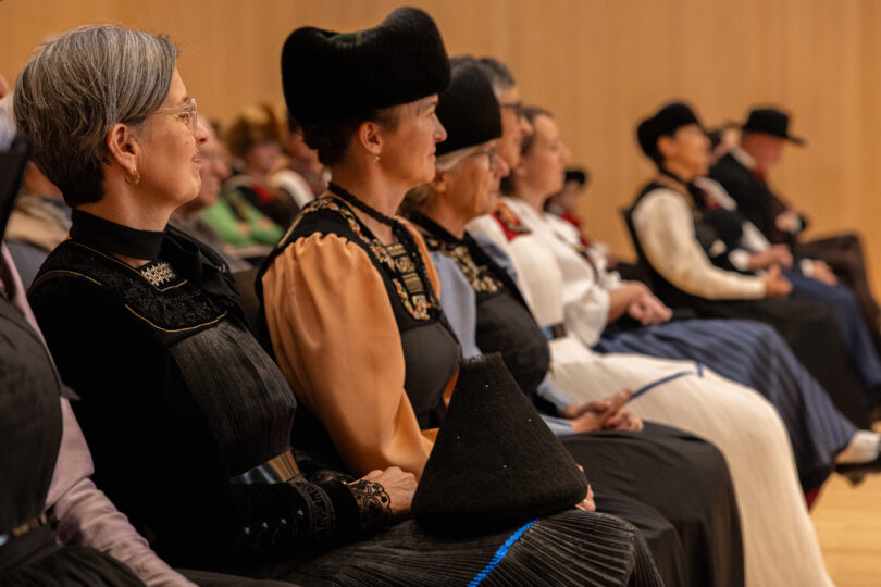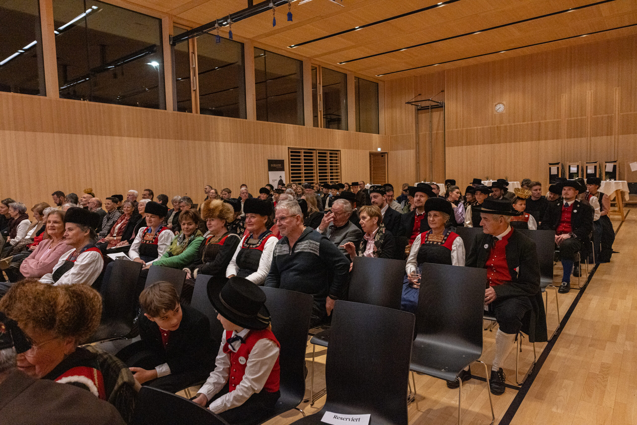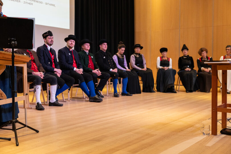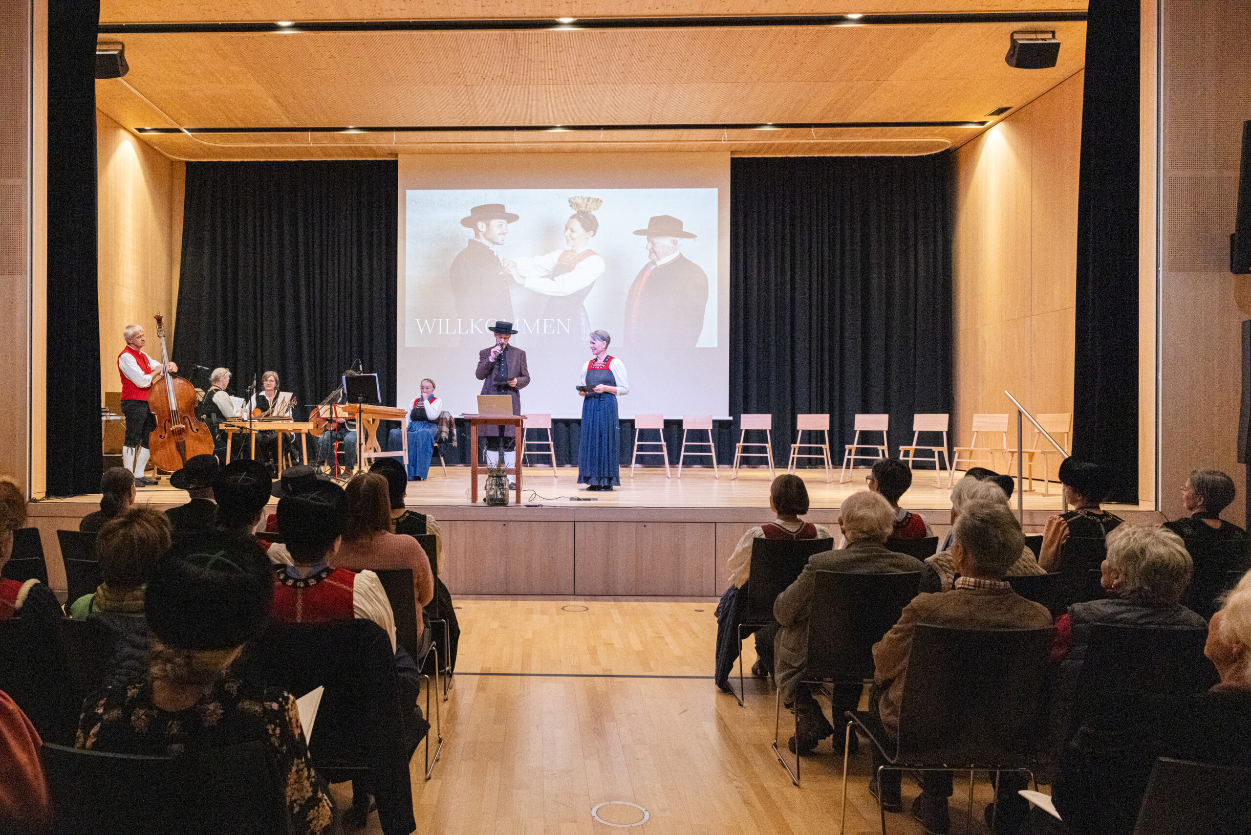 Mit einem eindrucksvollen Festabend im Dorfsaal Mellau präsentierten der Kulturverein einfach wälderisch und der Verein iNTRACHT zwei neue Publikationen, die sich der Bregenzerwälder Tracht in all ihrer Vielfalt widmen. Im Zentrum der Aufmerksamkeit stand die Druckschrift „In neuem / alten Glanz“, das Urs Schwarz nach jahrelanger Recherche erstellt hat.