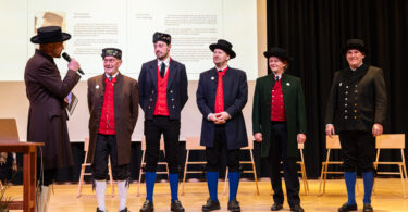 Eigens für diesen Anlass verfasste die Mundartdichterin Birgit Rietzler das Gedicht „MA maa d‘Wäldertracht“, das sie selber vortrug. Darauf folgte die Uraufführung des vertonten Gedichts durch Urs Schwarz und Luis Rehm; ein musikalischer Genuss.