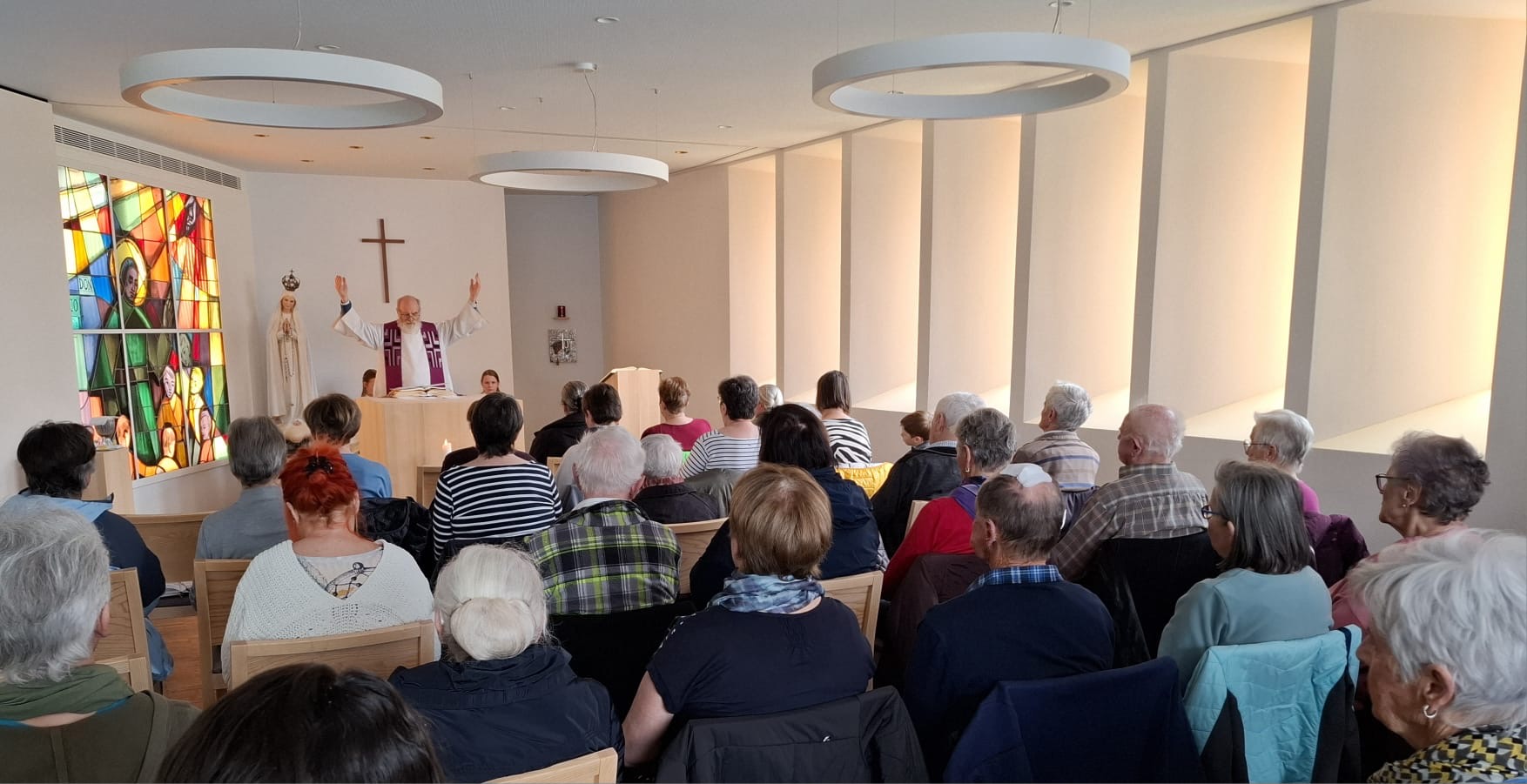 Rund 40 Gläubige sind der Einladung gefolgt und haben von Pfr. Josef Walter das Sakrament der Krankensalbung empfangen. So wie Jesus Kranke durch Handauflegung geheilt hat, so legte auch Pfr. Josef Walter jeder und jedem einzeln die Hände auf und salbte die Stirn und die Hände mit Öl, was ein berührender Moment war. Musikalisch wurde die Feier von den Sängerinnen mit wunderbaren Liedern umrahmt.