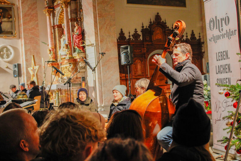 (mf)Am 27. Dezember 2025 lud der Chor Ohrôschmeichlar aus Bezau zum traditionellen Weihnachtskonzert „Wiôtôrkläng“ in die Pfarrkirche Bezau. Gemeinsam mit der Wälder Chorgemeinschaft Egg, den Schtubobuobo und Finks aus Au+ wurde den Besucherinnen und Besuchern ein stimmungsvoller Abend voller musikalischer Vielfalt und weihnachtlicher Klänge geboten.