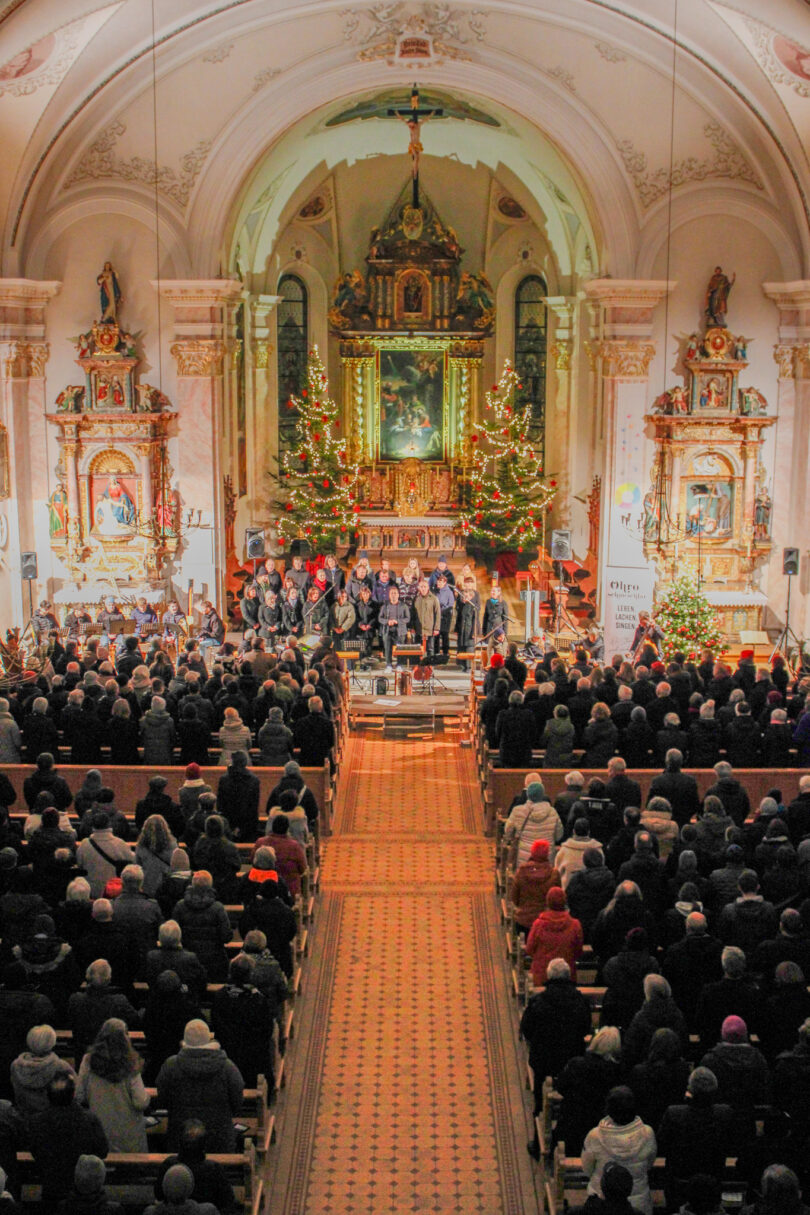 Die Pfarrkirche Bezau war bis auf den letzten Platz gefüllt, was als ganz besondere Wertschätzung und auch als Lohn für die Probenarbeit im Vorfeld gesehen werden darf. Die abwechslungsreichen Darbietungen reichten von traditionellen Weihnachtsliedern bis hin zu modernen Chorsätzen. Die besondere Atmosphäre der Kirche verlieh den Liedern eine feierliche und emotionale Wirkung.