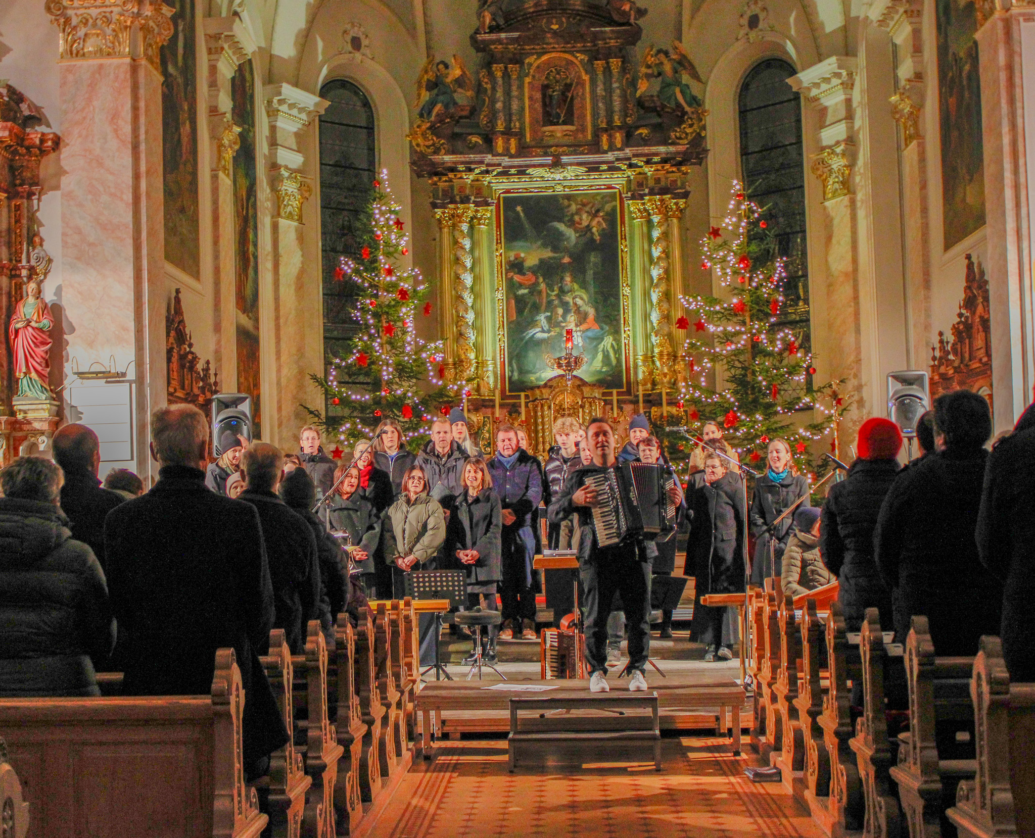 Die Pfarrkirche Bezau war bis auf den letzten Platz gefüllt, was als ganz besondere Wertschätzung und auch als Lohn für die Probenarbeit im Vorfeld gesehen werden darf. Die abwechslungsreichen Darbietungen reichten von traditionellen Weihnachtsliedern bis hin zu modernen Chorsätzen. Die besondere Atmosphäre der Kirche verlieh den Liedern eine feierliche und emotionale Wirkung.