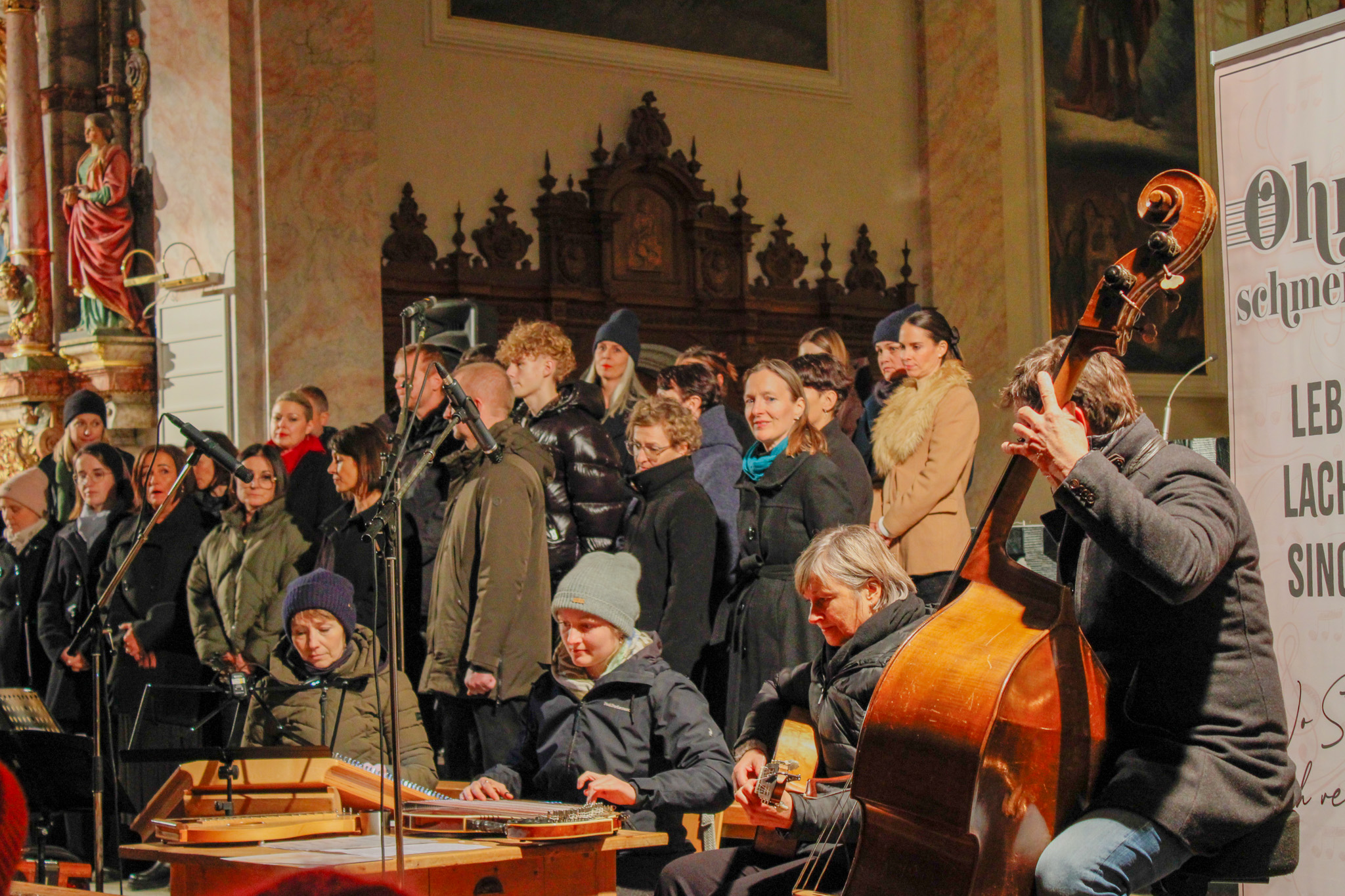 (mf)Am 27. Dezember 2025 lud der Chor Ohrôschmeichlar aus Bezau zum traditionellen Weihnachtskonzert „Wiôtôrkläng“ in die Pfarrkirche Bezau. Gemeinsam mit der Wälder Chorgemeinschaft Egg, den Schtubobuobo und Finks aus Au+ wurde den Besucherinnen und Besuchern ein stimmungsvoller Abend voller musikalischer Vielfalt und weihnachtlicher Klänge geboten.
