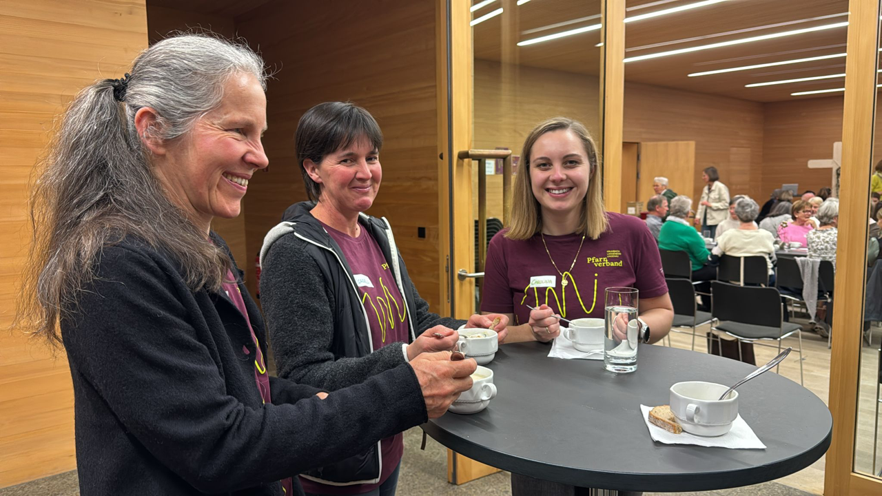 Nach der herzlichen Begrüßung von Silvia Berger begann Herma Sutterlüty gleich mit dem praktischen Teil. Mit einem Applaus als Dank an die Produzenten der Lebensmittel, an die großzügigen Sponsoren der Suppe und die Küchencrew vom Gasthaus Löwen, Lingenau, mit einem Händedruck an die Tischnachbarn und mit einem dankbaren „mmhh“ an Gott für die ausgezeichnet mundende Blumenkohlsuppe lud sie zu einem praxisnahen Tischgebet ein.