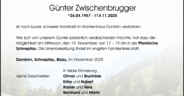 Traueranzeige Herr Günter Zwischenbrugger Bizau