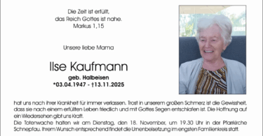 Traueranzeige Frau Ilse Kaufmann Hirschau