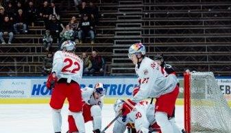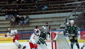 (mk)Der EC Bregenzerwald zeigte gegen die Red Bull Hockey Juniors große Moral, konnte einen rabenschwarzen ersten Abschnitt jedoch nicht mehr vollständig korrigieren. Am Ende setzte es eine 2:6-Niederlage gegen den Tabellenführer. (Foto: (c)ECB/Moosbrugger)
