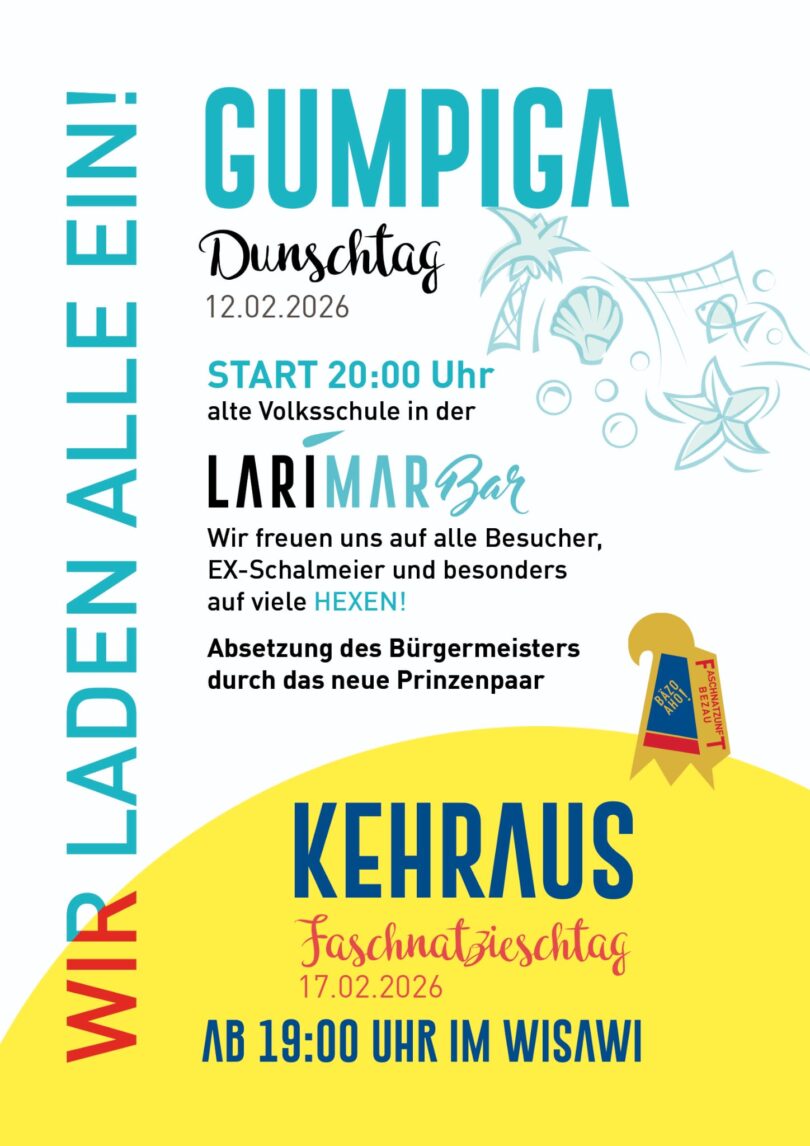 EVENTS Faschnatzunft Bezau: Gumpiga Dunschtag in der Larimar Bar Bezau – Auch alle Infos zum Kehraus im WISAWI 1 Tag altKommentar hinzufügen42 Klicks FacebookXGoogle+PinterestLinkedIn