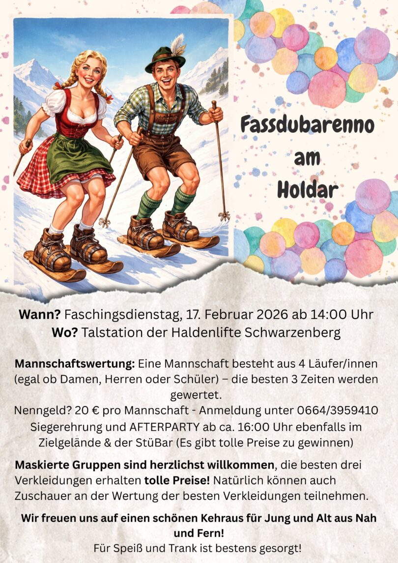 EVENTS Fassdubarenno am Holdar in Schwarzenberg am 17. Februar – Jetzt gleich anmelden! 3 Stunden altKommentar hinzufügen23 Klicks FacebookXGoogle+PinterestLinkedIn