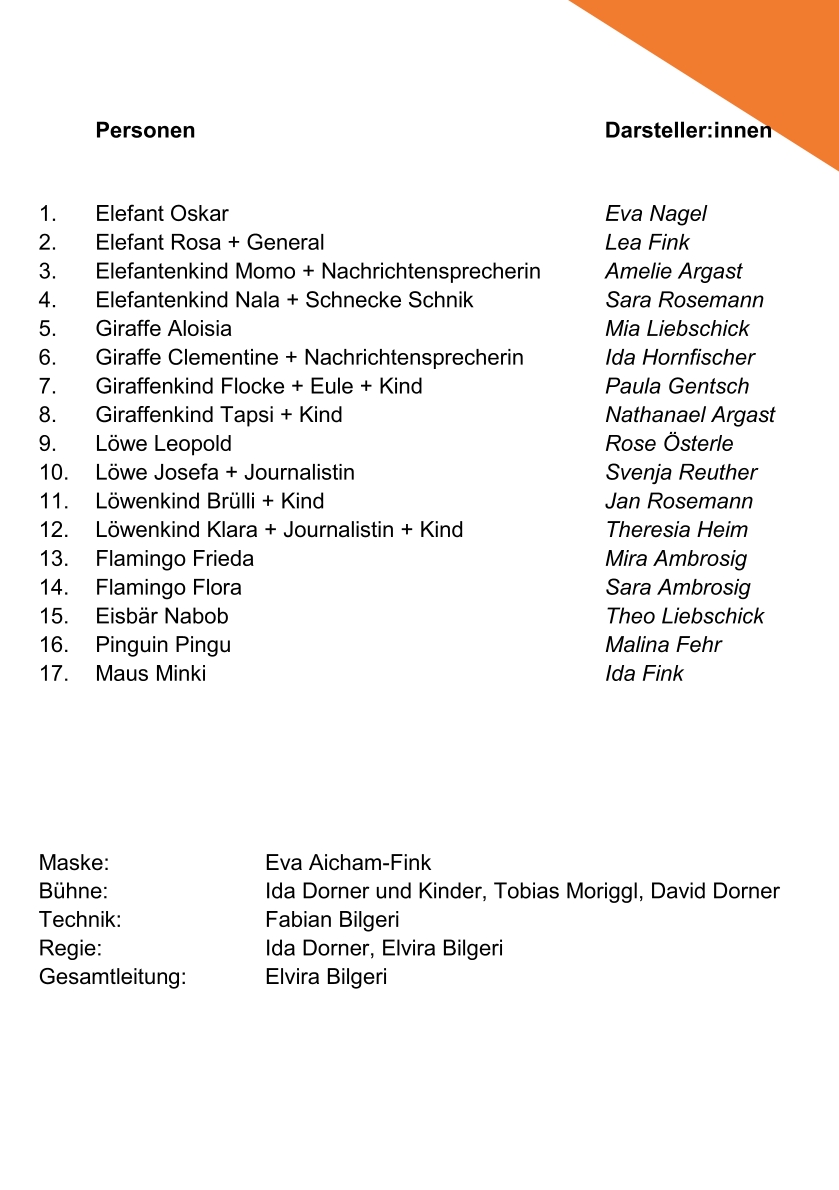 Auf der Bühne stehen 17 Kinder aus Sulzberg und der näheren Umgebung im Alter von 7 bis 12 Jahren. Mit großer Begeisterung, Mut und bemerkenswerter Bühnenpräsenz zeigten sie eindrucksvoll, welches Potenzial junges Theater hat. Obwohl das Stück durch die Tiere eine Freude für Kinder ist, greift es Themen auf, die auch Erwachsene stark ansprechen. Fragen zu Umwelt, Verantwortung und Zusammenhalt werden auf eine Weise behandelt, die überraschend aktuell wirkt.