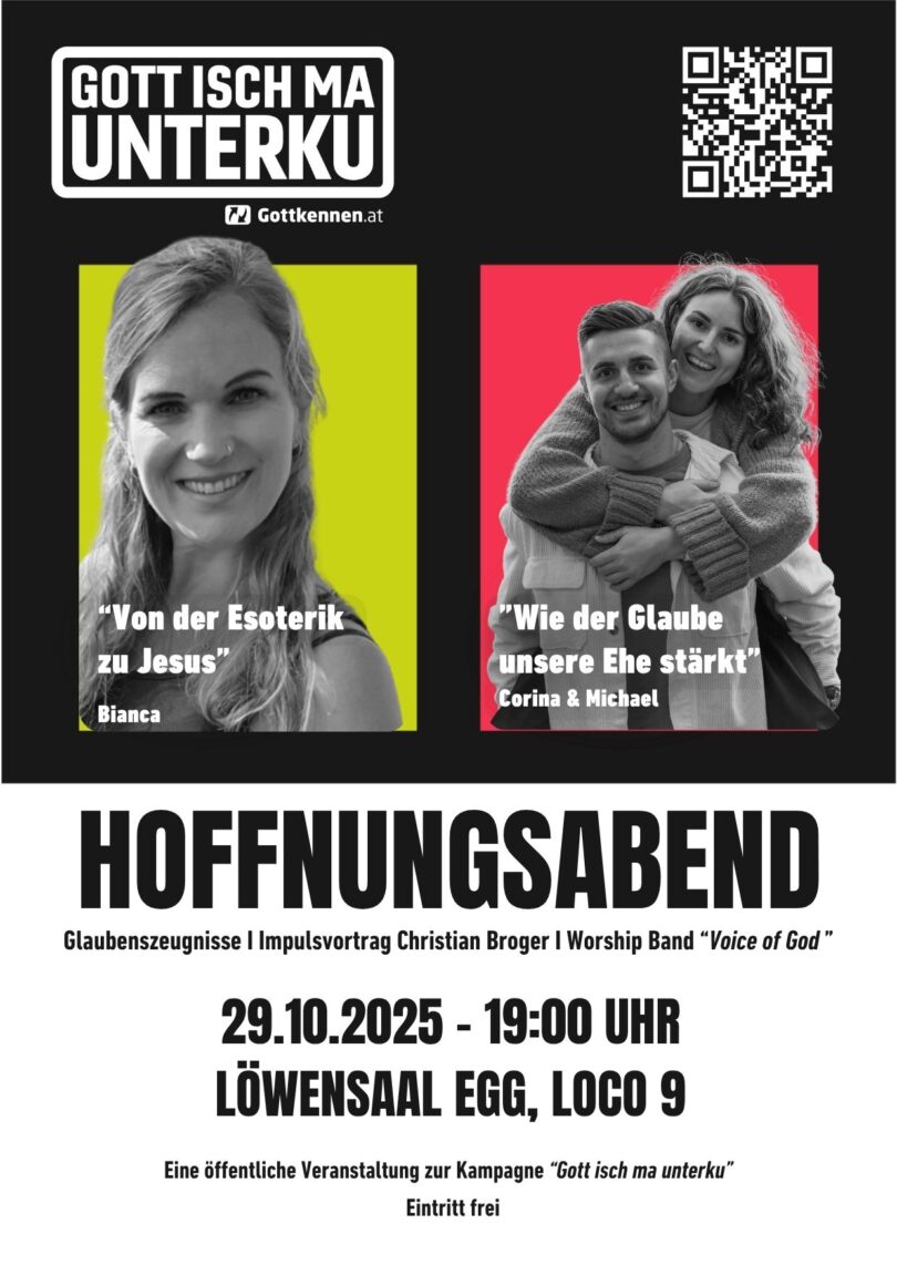 Während dem dreiwöchigen Kampagnenzeitraum finden in ganz Vorarlberg diverse Events und Aktionen statt, die auf diese Videogeschichten auf Youtube hinweisen und weitere Menschen zu Wort kommen lassen. Im Löwensaal in Egg, werden am Mittwoch, den 29.Oktober um 19:00 Uhr verschiedene Menschen aus dem Bregenzerwald von ihren Begegnungen mit Jesus Christus erzählen.