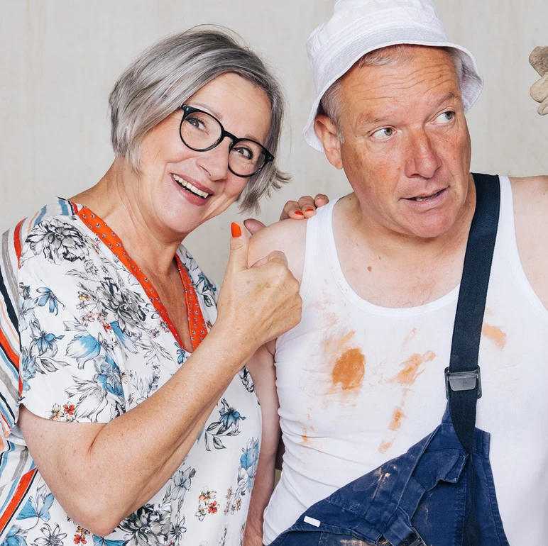 Maria Neuschmid und Stefan Vögel ab 16.10. auf Vorarlbergs Bühnen unterwegs 27 Jahre ist es her, als Stefan Vögel und Maria Neuschmid alias Günther und Irene Batlogg mit „Schaffa schaffa, Hüsle baua“ für ausverkaufte Theaterhäuser und abendfüllende Unterhaltung rund um das Thema Eigenheim sorgten. Ab 16.10. gibt es Neuigkeiten der Familie Batlogg, die nach der Rückkehr der Tochter aus Amerika vor einer ganz unerwarteten Herausforderung steht – ein Umbau zum Mehrgenerationenhaus.