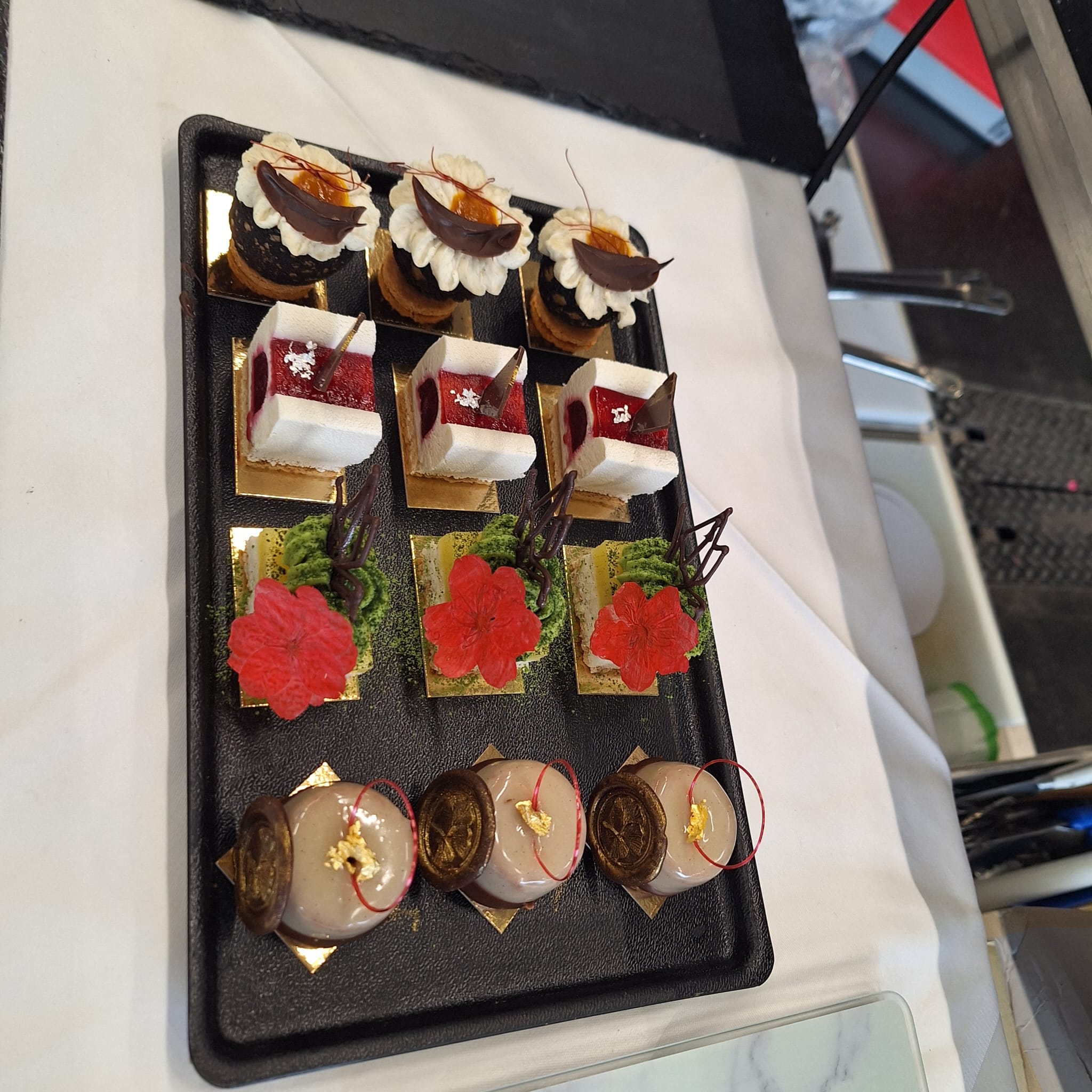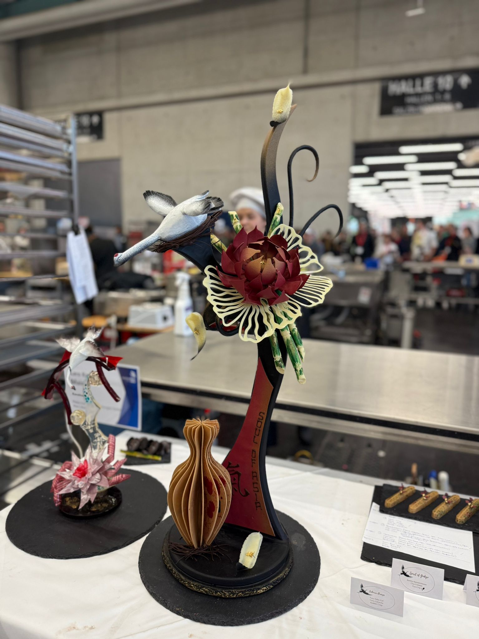 Der zeitraubende Wettbewerb zog sich über 3 Tage mit gesamt 18 Stunden. Gefordert waren Marzipanfiguren, die Modellierungsaufgabe wurde dabei erst vor Ort verkündet, vier verschiedene Petits Fours à 8 Stück, einen Schokoladenriegel à 8 Stück, ein Zuckerschaustück und ein Schokoladenschaustück. Übrigens: Das Thema des Wettbewerbs stand unter dem Motto “Eine Reise durch Asien”, dieses wurde im Juli verlautbart.