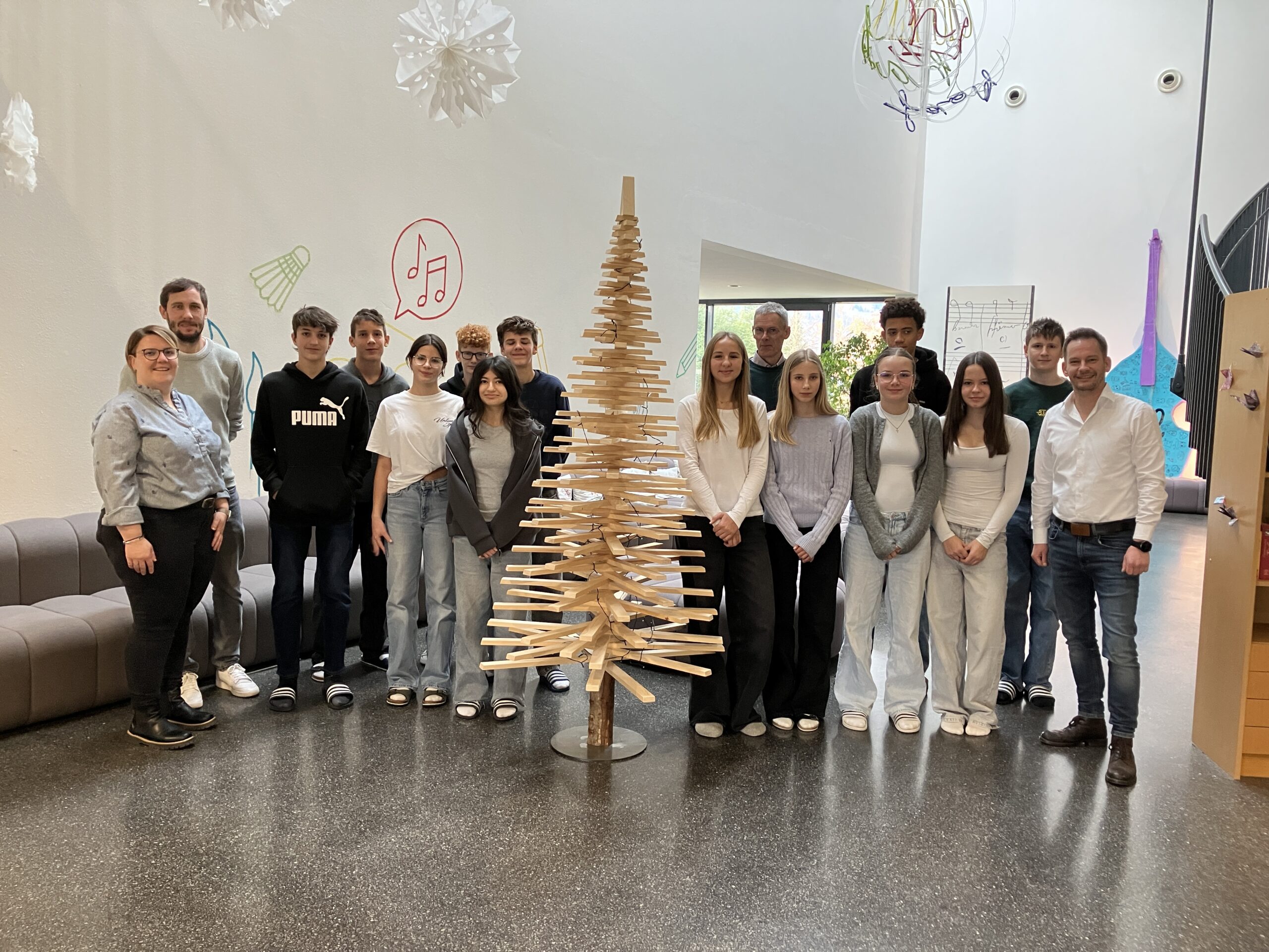 Ein großer Dank gilt Michael Bilgeri, der uns das gesamte Holz für die Umsetzung des Projekts zur Verfügung stellte, sowie unserem Schulwart Georg Graf, der uns bei der Umsetzung des Holz-Christbaums tatkräftig unterstützt hat. Ebenso bedanken wir uns herzlich bei Martin Kobras, dem Wälderhaus, Jasmin’s Deko-Geschäft, dem Badhus sowie der Sennerei Lingenau für die Bereitstellung der weiteren Preise.