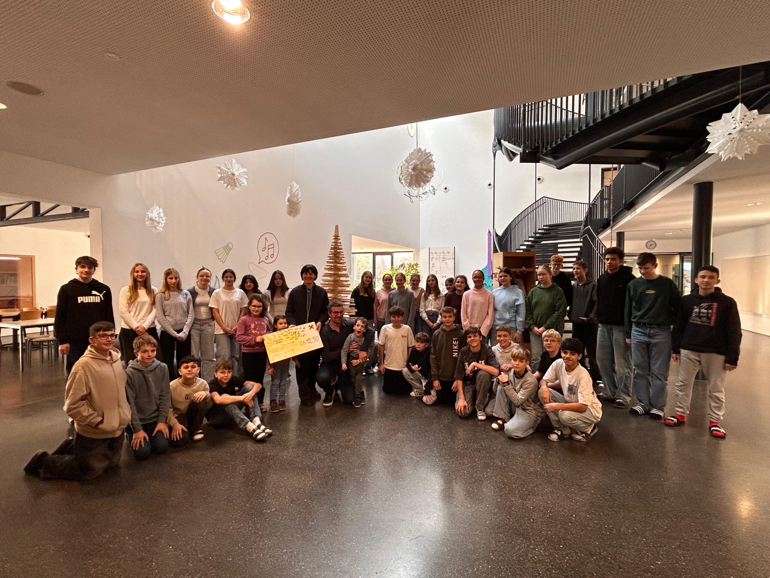 So war es uns möglich, Julian und seiner Familie einen Scheck über insgesamt 2.612,50 € zu überreichen. Die Familie besuchte uns zu diesem Anlass in der Schule, was für alle Beteiligten ein besonders schöner Moment war.