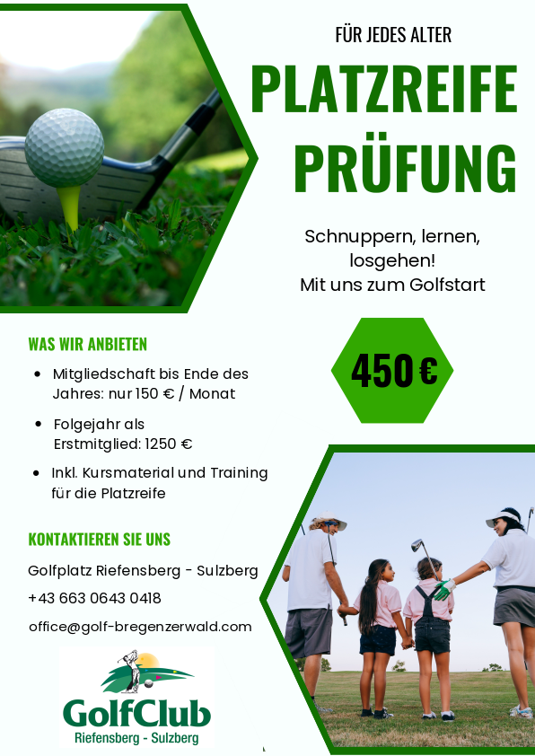 Aktuell wird ein Platzreifekurs angeboten, der für viele Ballsport- und Golfinteressierte – unabhängig vom Alter – eine spannende Möglichkeit bietet, den Golfsport von Grund auf kennenzulernen.