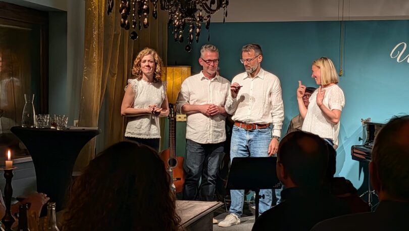 Gabriel Meckler (Percussion) verstärkte die Sänger:innen. Gemeinsam boten sie ein umfangreiches Programm – von Popsongs bis hin zu gefühlvollen Balladen. Reini freute sich sehr, wieder in Doren spielen zu dürfen und gab seine eigenen Lieder mit bewegenden Texten zum Besten. Erst nach einigen Zugaben konnten die Musiker:innen den Abend gemeinsam mit dem bunt gemischten Publikum ausklingen lassen. Es war ein Fest!