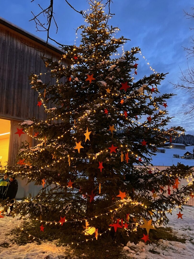 Ein besonderer Moment war die feierliche Illumination des Weihnachtsbaumes, den die Kinder zuvor mit selbstgebastelten Holzsternen geschmückt hatten. Ein Ensemble des Musikvereins Krumbach untermalte die Atmosphäre mit stimmungsvollen weihnachtlichen Melodien und machte den Adventmarkt zu einem unvergesslichen Erlebnis.
