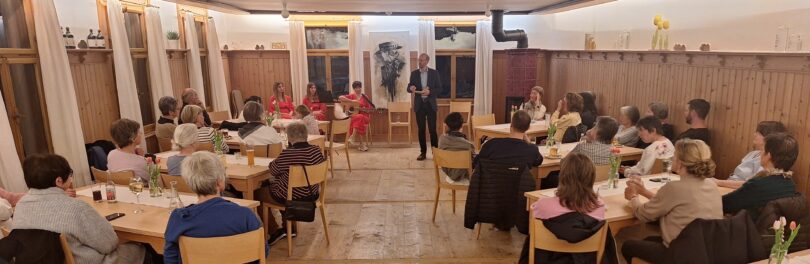 Die Auer Familienmusik „Meorstimmig“ hatte ihre – teilweise eigens komponierten – Liedtexte dem Thema hervorragend angepasst und gekonnt vorgetragen. Der eingeheizte Ofen und die professionelle Bewirtung durch das Löwen-Team boten den passenden Rahmen für Reflexion und Gespräch.