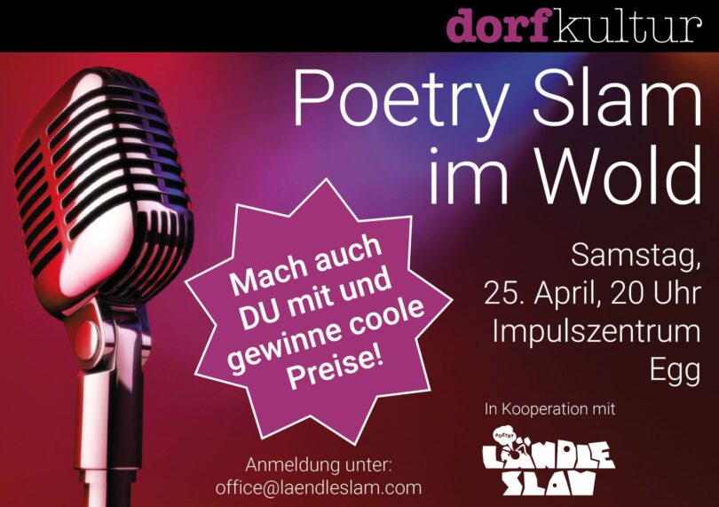 Das Publikum bewertet die Texte, und so kommen einige ins Finale. Dort treten die Poet:innen mit einem neuen Text an und das Publikum entscheidet erneut. Das Coole daran: Jede:r kann mitmachen! Für Anmeldungen und Fragen: office@laendleslam.com