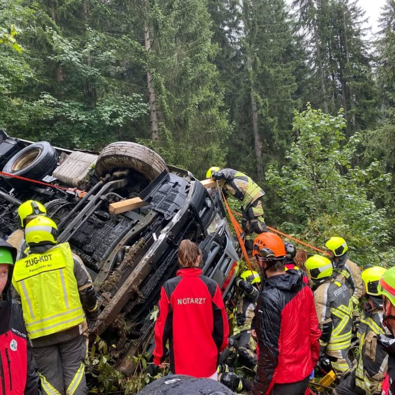 Der Lenker wurde schwer verletzt im Führerhaus eingeklemmt und musste von der Feuerwehr befreit werden. Nach der Erstversorgung wurde er mit dem Notarzthubschrauber Gallus 1 ins Landeskrankenhaus Feldkirch geflogen.