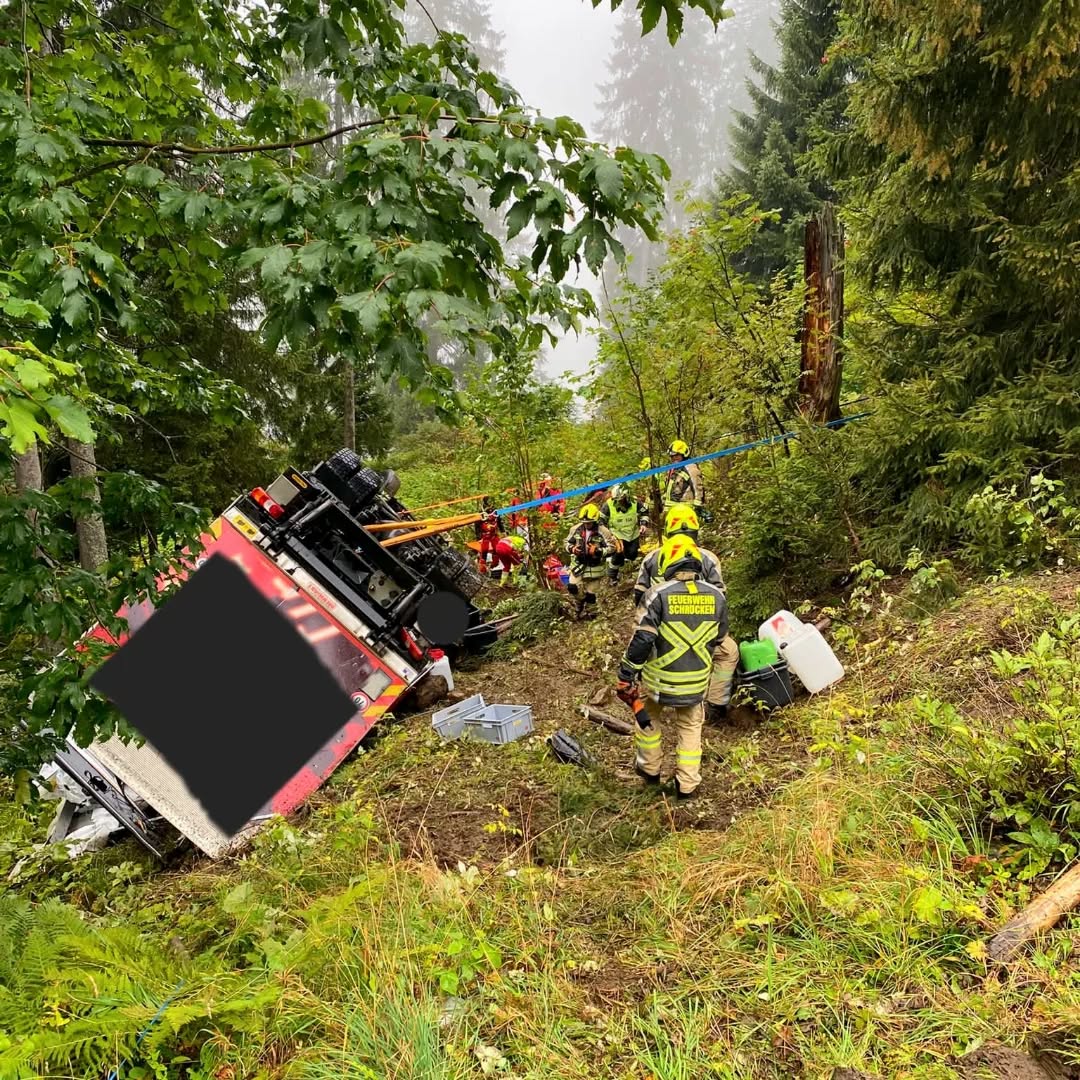 Ein LKW-Fahrer verlor gegen 10:00 Uhr aus bislang ungeklärter Ursache die Kontrolle über sein Fahrzeug, kam von der Fahrbahn ab und stürzte rund 30 Meter über steiles Gelände. Der LKW kippte um und blieb seitlich liegen.