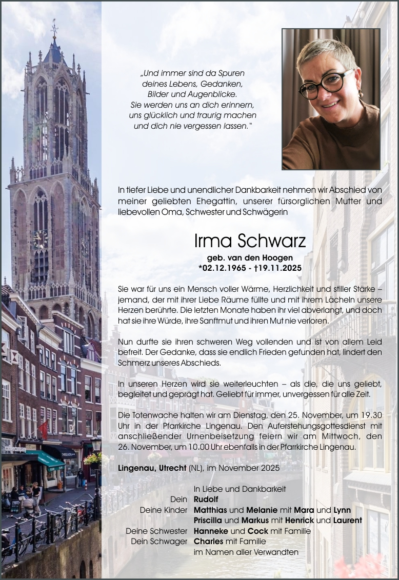 TODESANZEIGEN Traueranzeige Frau Irma Schwarz Lingenau 5 Tagen altKommentar hinzufügen163 Klicks FacebookXGoogle+PinterestLinkedIn