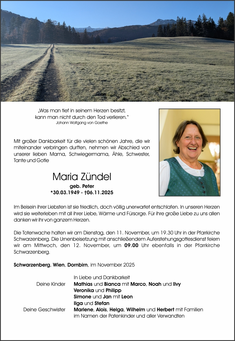 TODESANZEIGEN Traueranzeige Frau Maria Zündel Schwarzenberg 1 Woche altKommentar hinzufügen154 Klicks FacebookXGoogle+PinterestLinkedIn