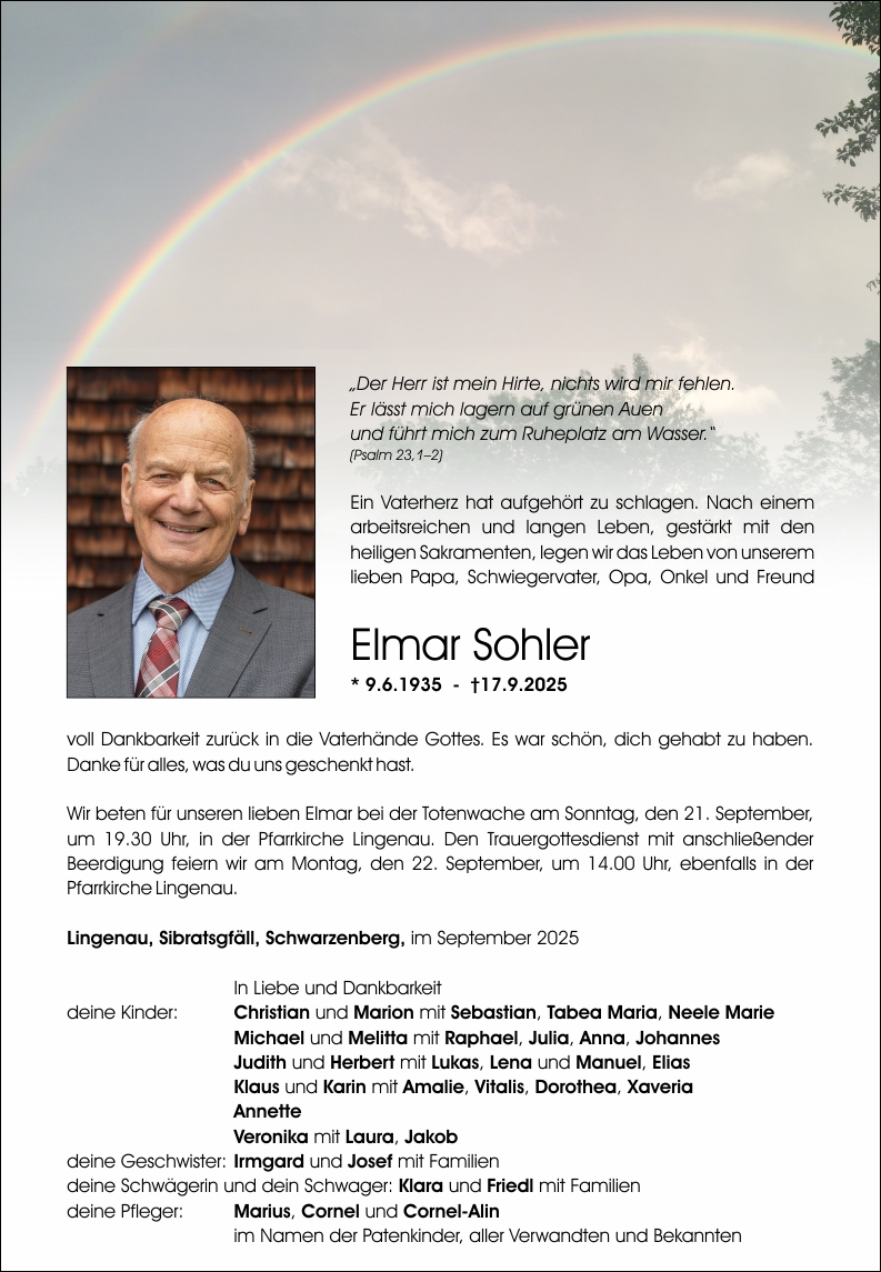 TODESANZEIGEN Traueranzeige Herr Elmar Sohler Lingenau 3 Monaten altKommentar hinzufügen120 Klicks FacebookXGoogle+PinterestLinkedIn