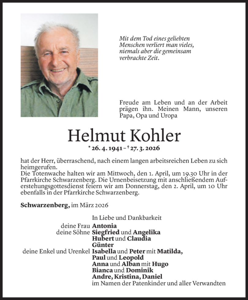 TODESANZEIGEN Traueranzeige Herr Helmut Kohler Schwarzenberg 2 Tagen altKommentar hinzufügen241 Klicks FacebookXGoogle+PinterestLinkedIn