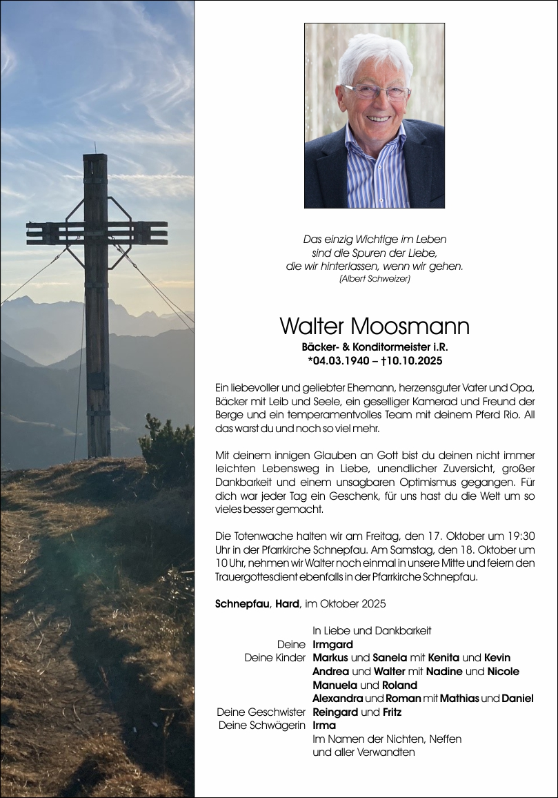 NEWS • TODESANZEIGEN Traueranzeige Herr Walter Moosmann Schnepfau 1 Tag altKommentar hinzufügen143 Klicks FacebookXGoogle+PinterestLinkedIn