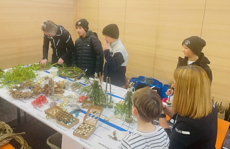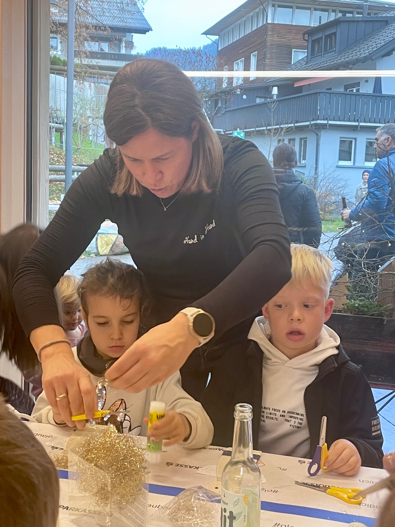 (hih)Auch heuer waren wir wieder bei der Adventsausstellung in Egg dabei. Im Bienenhaus bauten wir unser Weihnachtsatelier auf: Hier durfte jedes Kind zwei Bastelstationen besuchen und am Ende die Kunstwerke mit nach Hause nehmen.