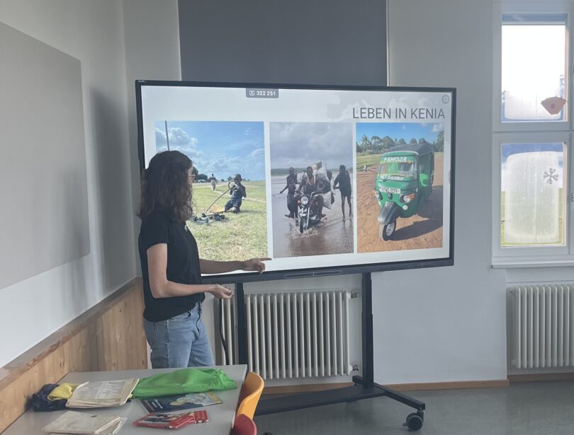 Ein besonderer Höhepunkt war der Besuch von Sonja Peter an der Volksschule Großdorf. Sie vermittelte den Kindern eindrucksvoll Einblicke in das Leben in Kenia. Besonders bewegend war die Erklärung, wie weit Kinder dort gehen müssen, um Wasser zu holen. Um den Weg greifbar zu machen, verglich sie die Strecke mit jener von der Volksschule Großdorf bis zur Bregenzerache und wieder zurück, zusätzlich mit einem gefüllten Kanister. Die Kinder waren überrascht, besonders weil dieses Wasser oft nicht sauber ist. Außerdem erfuhren sie, wie aus alten Reifen Flipflops entstehen und mit welchen einfachen Spielzeugen Kinder in Kenia häufig spielen. Großen Eindruck machte auch die Information, dass acht Pfandflaschen etwa zwei Euro ergeben und damit bereits ein kleiner Ofen finanziert werden kann.