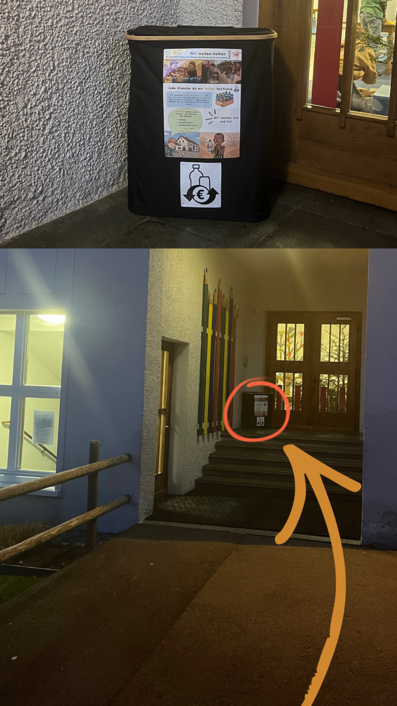Um das Sammeln zu erleichtern, wurden zwei Behälter aufgestellt. Einer befindet sich beim Schuleingang und ist für die Bevölkerung zugänglich. Ein weiterer steht im Schulhaus.