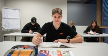 „Im ersten Schuljahr steht Englisch auf dem Lehrplan, für mich ein gutes Warm-up“, verrät Erik, „im nächsten ist Mathematik dran, gefolgt von Deutsch und einem technischen Fachbereich.“ Jeden Freitag trifft sich die Klasse am Blum-Standort in Dornbirn, um von 8 bis 12.30 Uhr am Unterricht teilzunehmen. „Da unsere Matura im Sommer mündlich stattfindet, sprechen wir dort viel Englisch und halten Referate“, erklärt der 18-Jährige. Im Anschluss bearbeiten die Schülerinnen und Schüler, die zwischen 15 und 21 Jahre alt sind, bis 13.15 Uhr gemeinsam Aufgaben, bevor sie ins Wochenende starten.
