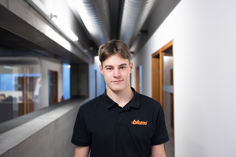Gemeinsam mit 10 weiteren Bewerberinnen und Bewerbern qualifizierte sich Erik Engler für die neue Hightech-Ausbildung mit Matura beim Beschlägehersteller Blum. Im September des Vorjahres startete er im Fachbereich CAD-Konstruktion und freut sich über ein besonderes Highlight: den Matura-Unterricht, der während der bezahlten Arbeitszeit im Betrieb stattfindet. Hierfür steht den Jugendlichen, die aus unterschiedlichen Ausbildungsberufen stammen, eine Lehrkraft sowie eine eigene Klasse zur Verfügung.