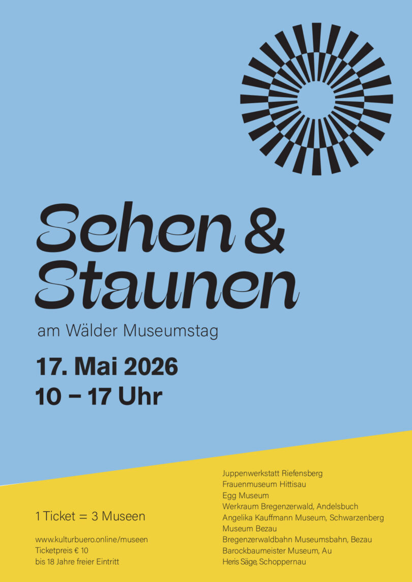 Unter dem gemeinsamen Motto „Sehen und Staunen“ präsentieren insgesamt 14 Museen und Ausstellungseinrichtungen im Bregenzerwald die beeindruckende Bandbreite ihrer Arbeit und machen die kulturelle Vielfalt der Region sichtbar. Beim Wälder Museumstag am Sonntag, den 17. Mai 2026, öffnen neun Häuser ihre Türen und laden zu einer besonderen Entdeckungsreise ein.