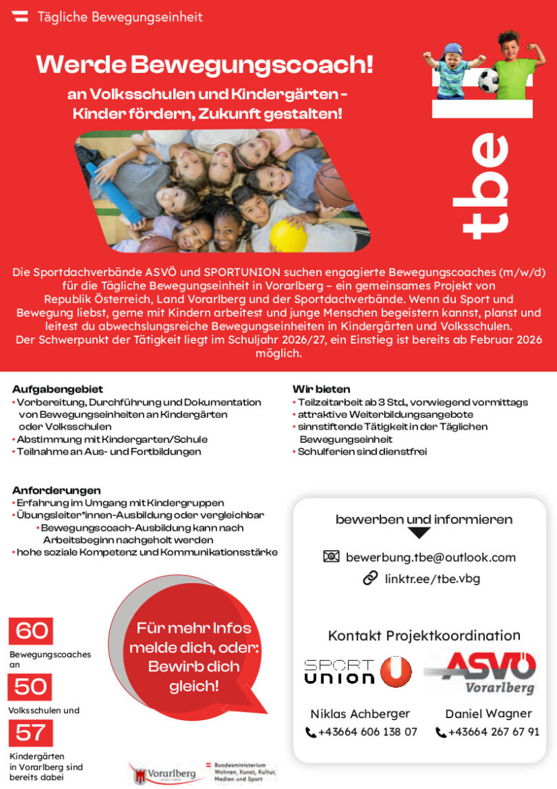 NEWS • STELLENANGEBOTE Werde Bewegungscoach an Volksschulen und Kindergärten 23 Stunden altKommentar hinzufügen162 Klicks FacebookXGoogle+PinterestLinkedIn